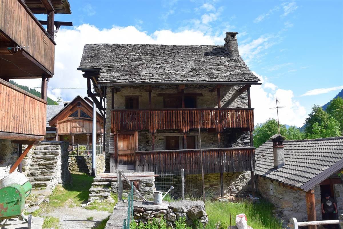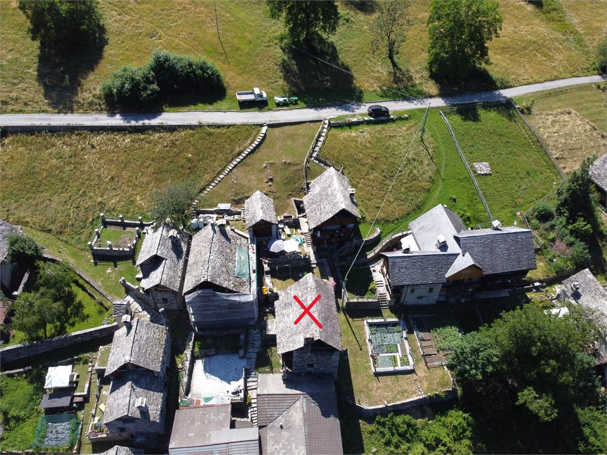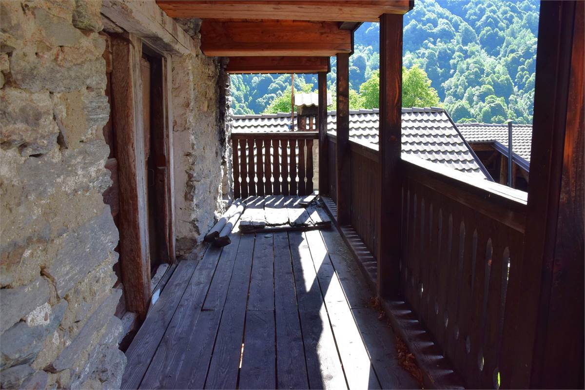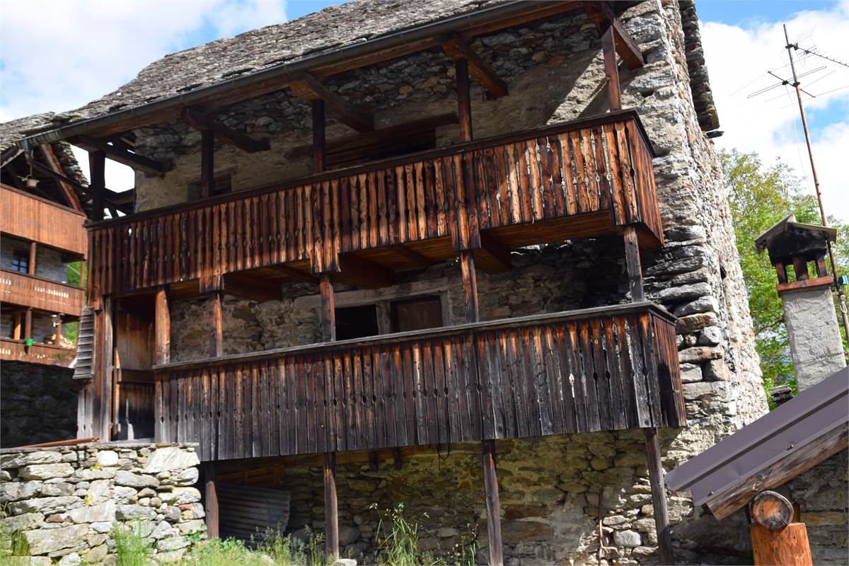 La copertura, con il caratteristico manto in piode tradizionali su orditura portante in tondi di legno, è stata completamente rifatta nel 1988 compresa di camino e canaleria in rame. In tale occasione, sono stati rifatte anche le due balconate in legno massiccio al piano rialzato e al primo piano che corrono lungo tutto la facciata prospicente la piazzetta. Successiva manutenzione straordinaria al tetto nel 2020. Effettuato sopralluogo a fine Giugno 2025 con impresario che garantisce le buone condizioni della copertura con solo qualche piccolo intervento di manutenzione necessario, costo stimato di poche migliaia di euro. Immobile privo di impianti (possibilità di allaccio all'energia elettrica e all'acquedotto nelle immediate vicinanze). Presente antico fornetto con carica dall'esterno, sul balcone. A completamento della proprietà vi sono: