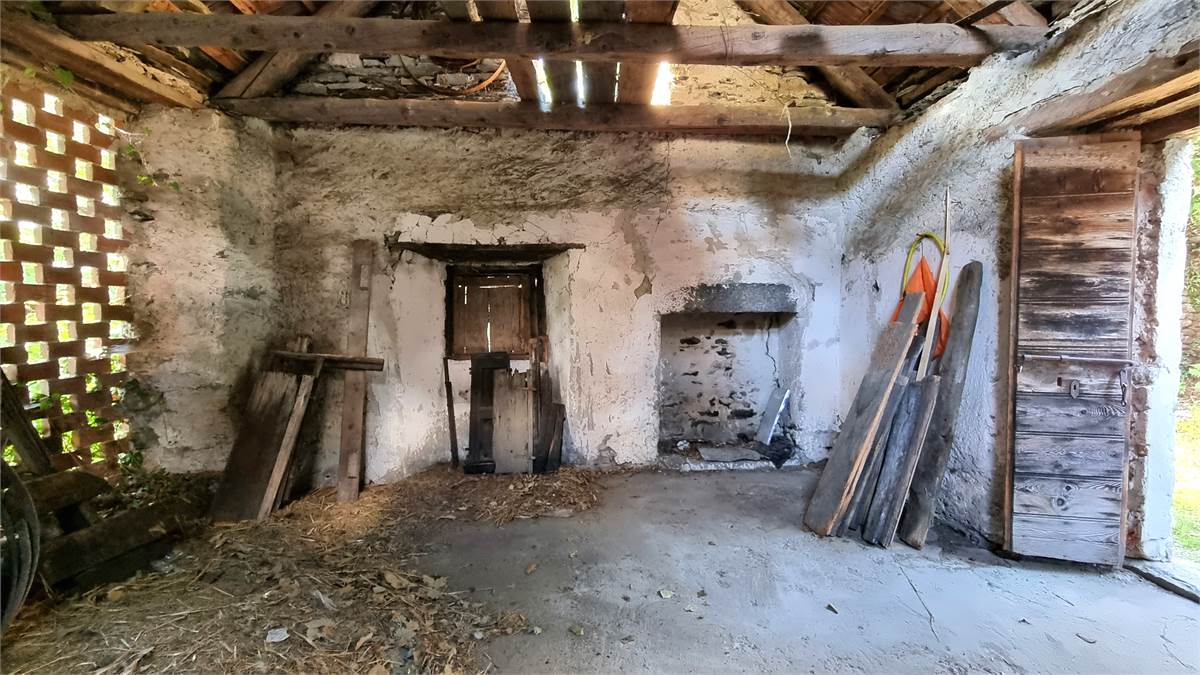 - un locale unico al primo piano con doppia porta d'ingresso, camino a legna aperto e sottotetto a vista.
