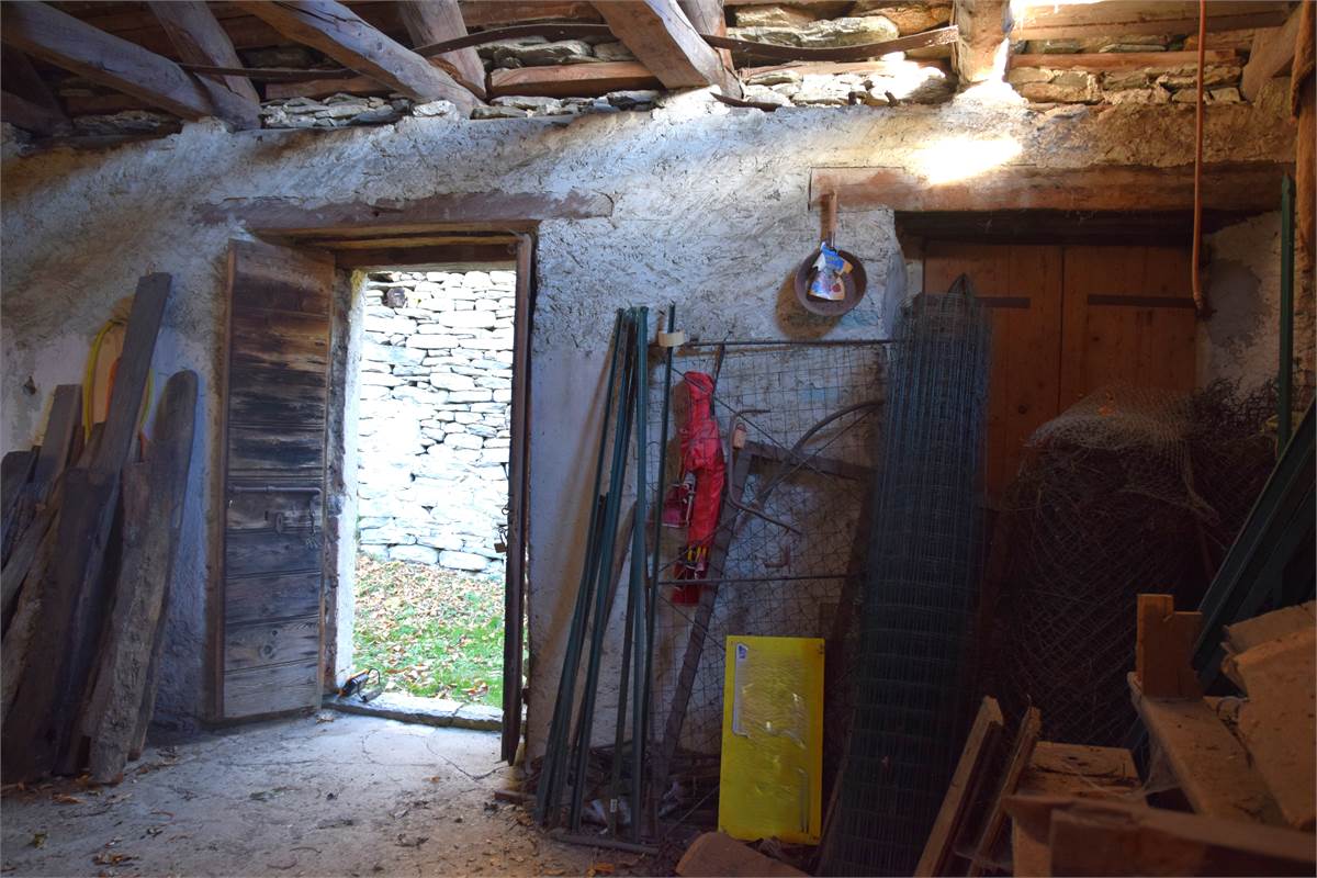 Il fabbricato è ad oggi sprovvisto di impianti ma vi sono comodi allacci alle utenze di acqua e di energia elettrica di fronte. Tetto in tegole rosse. Il rustico è attualmente censito al catasto in categoria C/2 (deposito) ma da PRGC rientra nei nuclei antichi nella categoria "Edifici, aggiunte, parti di edifici privi di valore storico/ambientale o in contrasto": per gli edifici non ad uso residenziale c'è la possibilità di "cambiamento di destinazione in residenza ed attività compatibili". Consentito mantenere le altezze interne esistenti o, se troppo modeste, di sopraelevare fino ad un metro. Vicoli sulle finiture.