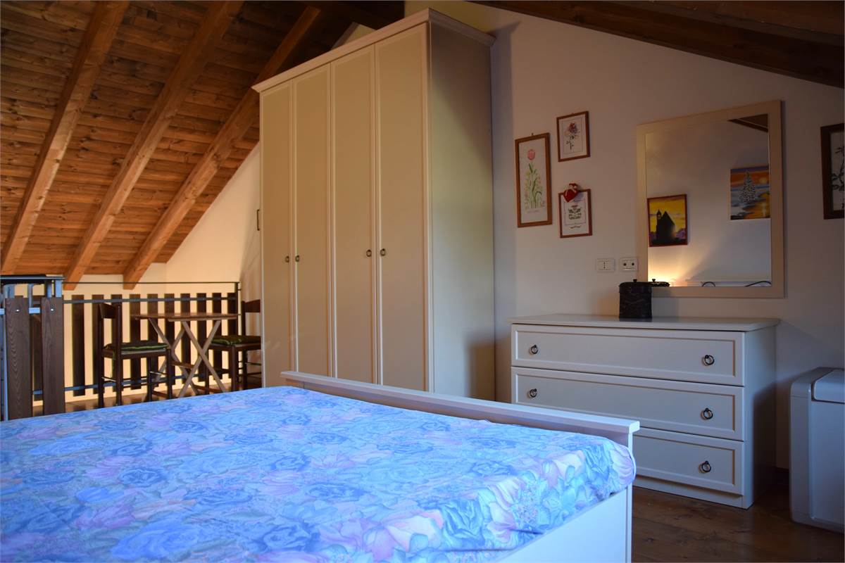 - ingresso su zona giorno con cucina a vista, camera con letto a castello, disimpegno, bagno con doccia, terrazzo coperto lato Monte Rosa e balcone coperto lato nord/est sito al piano primo.