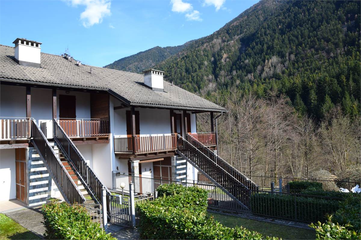 COMUNE DI VANZONE CON SAN CARLO - Nella tranquilla Località Valleggio (670 metri di altitudine), immerso nel verde e a soli 12 minuti dalle porte di Macugnaga, vendesi grazioso appartamento su due livelli sito nella palazzina "A" del complesso immobiliare denominato "Le Corti del Monte Rosa", un villaggio composto da moderne soluzioni tipo chalet costruito nel 2010.