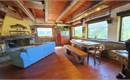 La baita si sviluppa principalmente su due livelli abitativi, collegati fra loro da scala interna in legno oppure con accessi indipendenti. Il secondo ed ultimo piano è composto da ingresso su grande zona giorno con camino aperto a legna, aperture panoramiche, travi in legno e sottotetto a vista. Angolo cottura con mobili cucina in legno, stufa economica e bombola a gas per cucinare (esterna). Bagno con doccia e boiler elettrico per l'acqua calda. Tramite bella scala interna, si accede al soppalco dove sono state ricavate due stanze collegate fra loro da grazioso ponticello sospeso in legno. L'arredo attualmente esistente è compreso nella vendita e, per gran parte di esso, è stato impiegato il legname in rovere e castagno della demolizione dell'originale tetto in sasso (scale, tavolo, panche, ponticello etc..). Il riscaldamento è garantito da stufe e camino a legna, canne fumarie intubate in acciaio inox. Infissi esterni in legno di castagno doppio vetro. Presenti utenze di energia elettrica e acqua. Impianto elettrico a scomparsa. Lampadari ricavati da vecchie mangiatoie. Pavimentazione in parte in legno di larice e in parte in sasso (zona di camino, cucina e bagno). Portone d'ingresso in castagno. Fossa settica nuova.