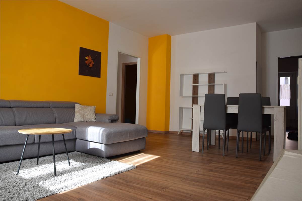 The heating is independent with radiators and a new Buderus condensing boiler. Independent electricity, water and natural gas utilities. Connection to the municipal sewer system. The windows and doors are new, made of double-glazed PVC, white on the inside and wood-effect on the outside. The flat was completely renovated two years ago (refurbishment of systems, windows and doors, floors, partial internal insulation, etc.). It is sold furnished as shown in the photographs. Vacant and available immediately. The original building is old and underwent a complete renovation in the early 1980s, including a black concrete tile roof. No condominium fees (only staircase lighting).
