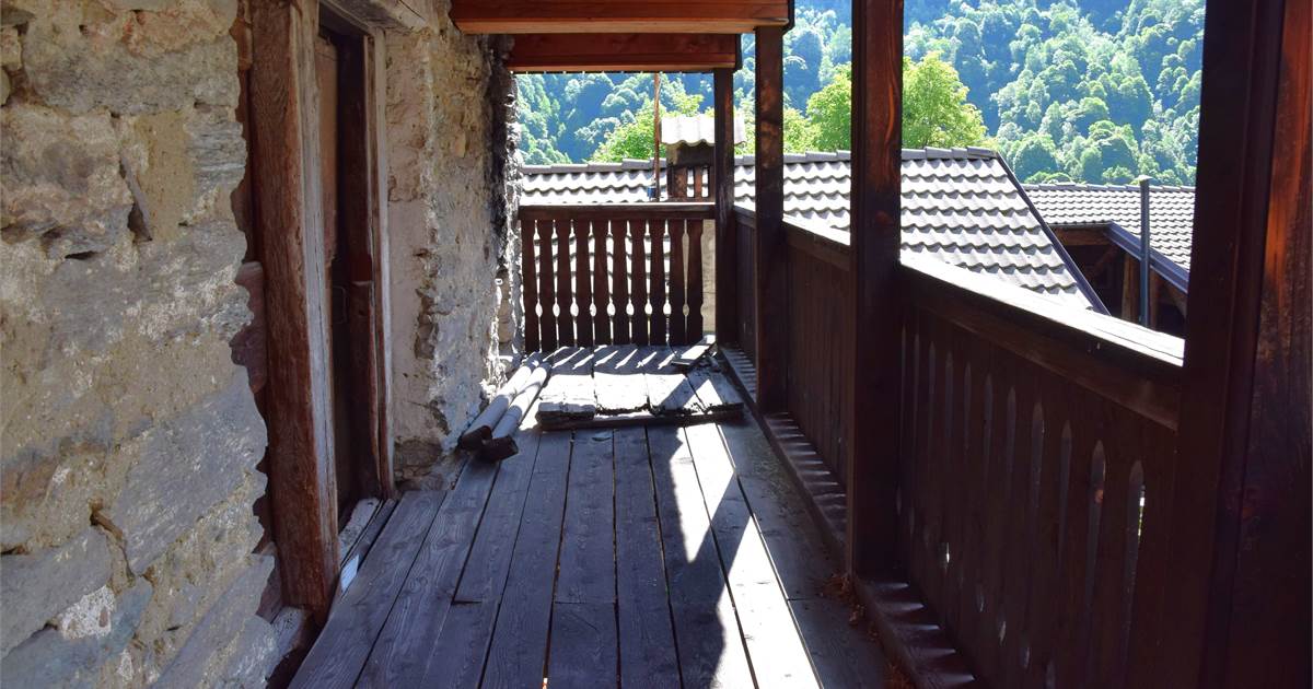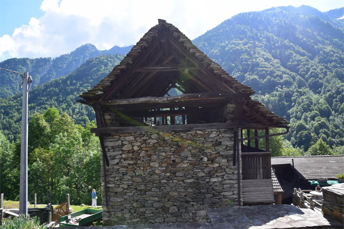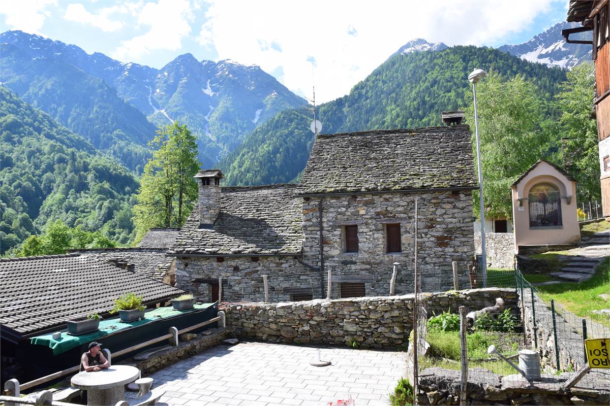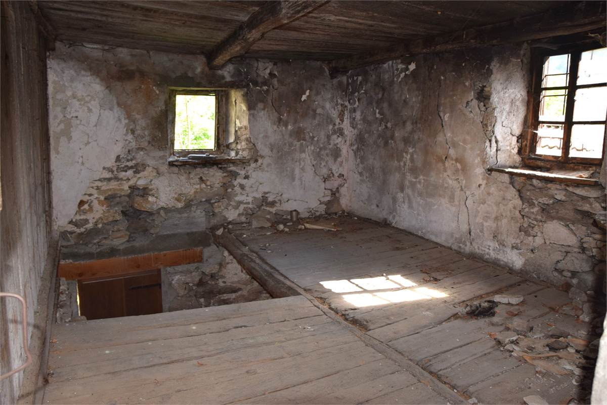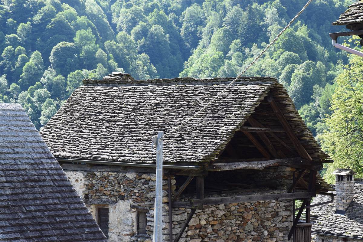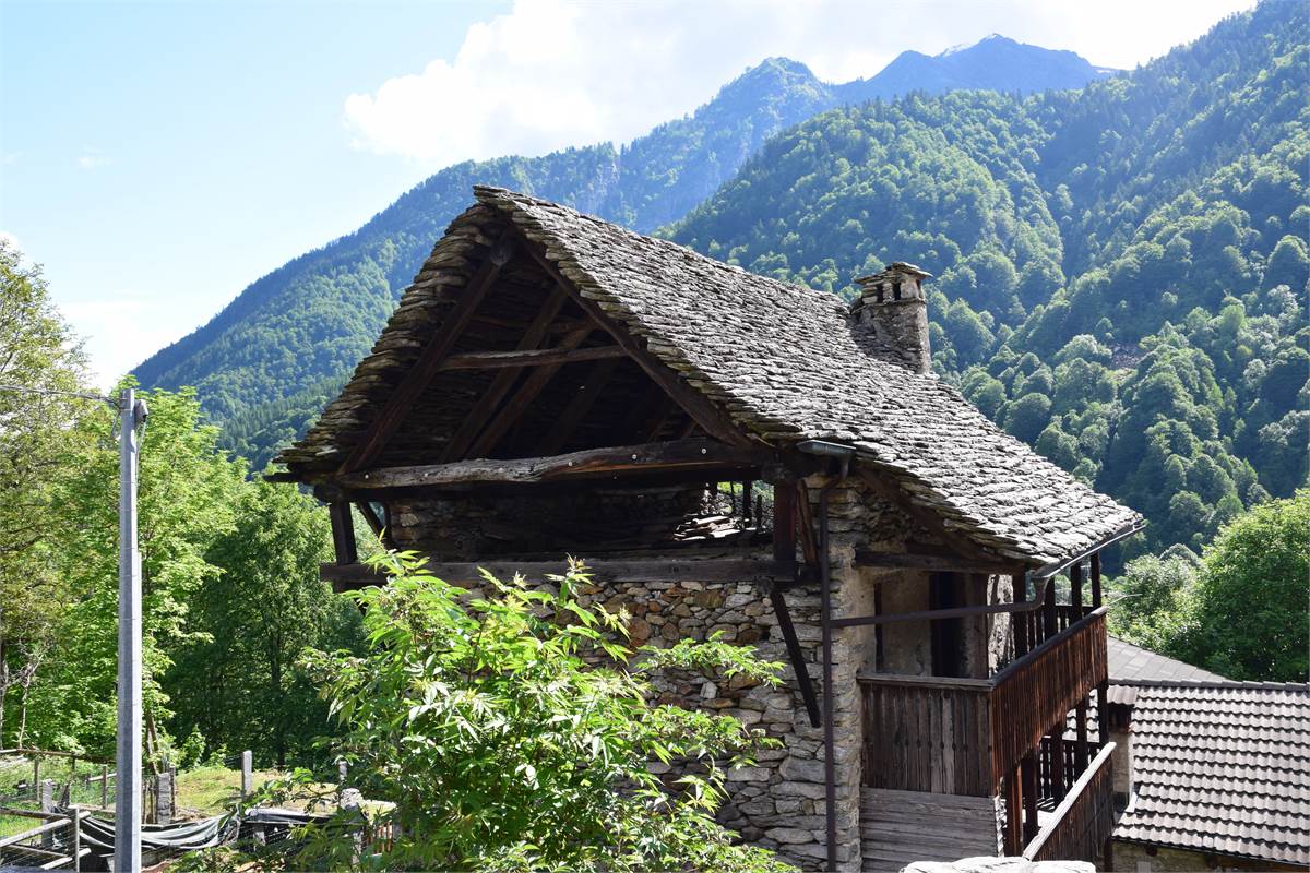La copertura, con il caratteristico manto in piode tradizionali su orditura portante in tondi di legno, è stata completamente rifatta nel 1988 compresa di camino e canaleria in rame. In tale occasione, sono stati rifatte anche le due balconate in legno massiccio al piano rialzato e al primo piano che corrono lungo tutto la facciata prospicente la piazzetta. Successiva manutenzione straordinaria al tetto nel 2020. Effettuato sopralluogo a fine Giugno 2025 con impresario che garantisce le buone condizioni della copertura con solo qualche piccolo intervento di manutenzione necessario, costo stimato di poche migliaia di euro. Immobile privo di impianti (possibilità di allaccio all'energia elettrica e all'acquedotto nelle immediate vicinanze). Presente antico fornetto con carica dall'esterno, sul balcone. A completamento della proprietà vi sono: