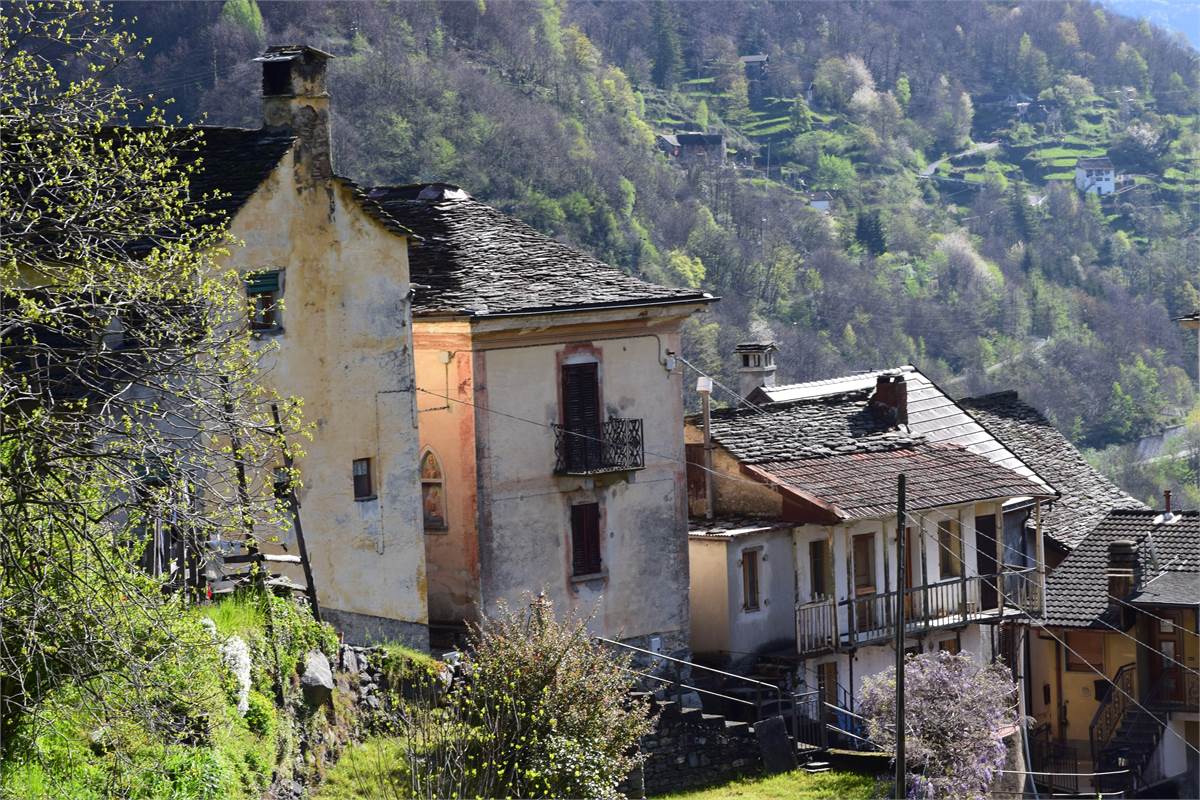 COMUNE DI CALASCA CASTIGLIONE - Nel tranquillo abitato di Castiglione, raggiungibile con breve tratto a piedi sulla mulattiera del paese, vendesi storica casa indipendente con giardino e terreni.