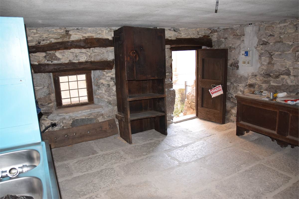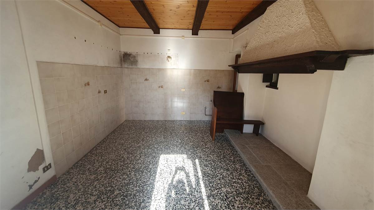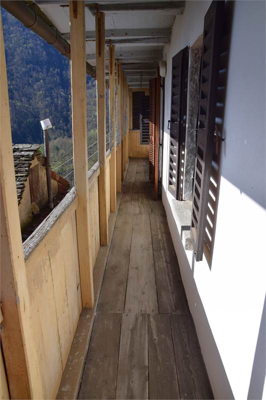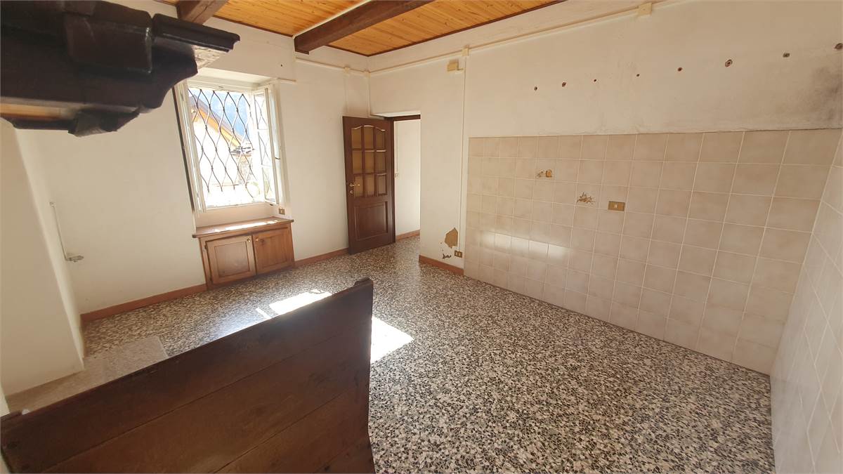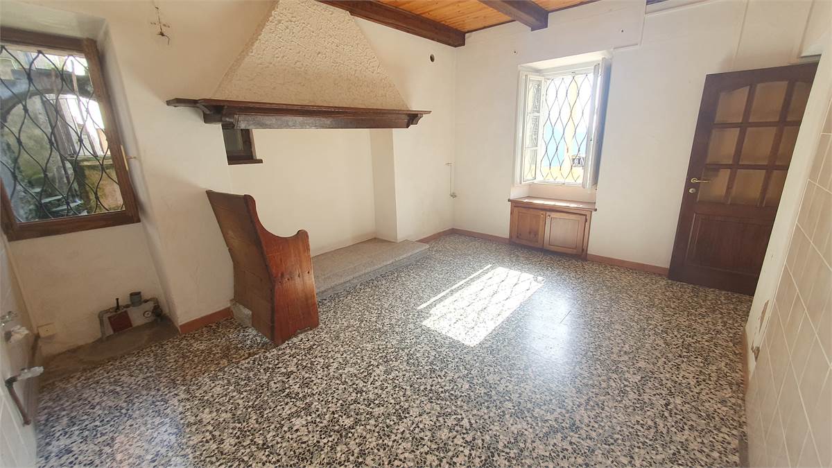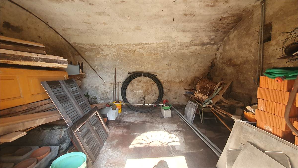 L'immobile è stato parzialmente ristrutturato ed è composto al piano terra da ingresso con armadio a muro, cucina abitabile con bel camino aperto, soggiorno con antico fornetto e balconata in legno con piccolo wc esterno. Tramite scala interna in sasso, si accede al primo piano in cui vi sono due camere da letto con bei pavimenti in legno, grazioso balconcino, balconata in legno con bella visuale sulla vallata e piccolo ripostiglio. Accessibile sempre dall'interno con scala, vi è il sottotetto non abitabile. Al piano seminterrato, invece, troviamo due spaziose cantine, di cui una a volta, con pavimentazione in sasso.