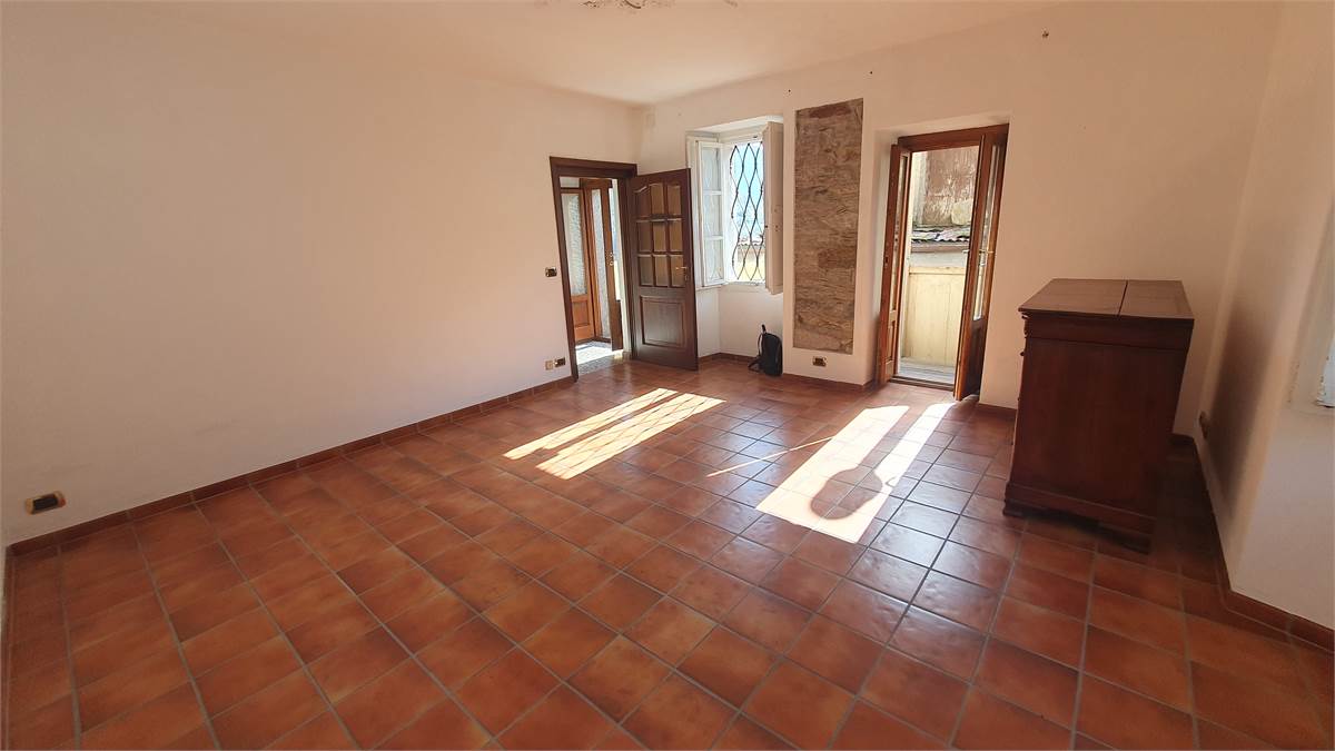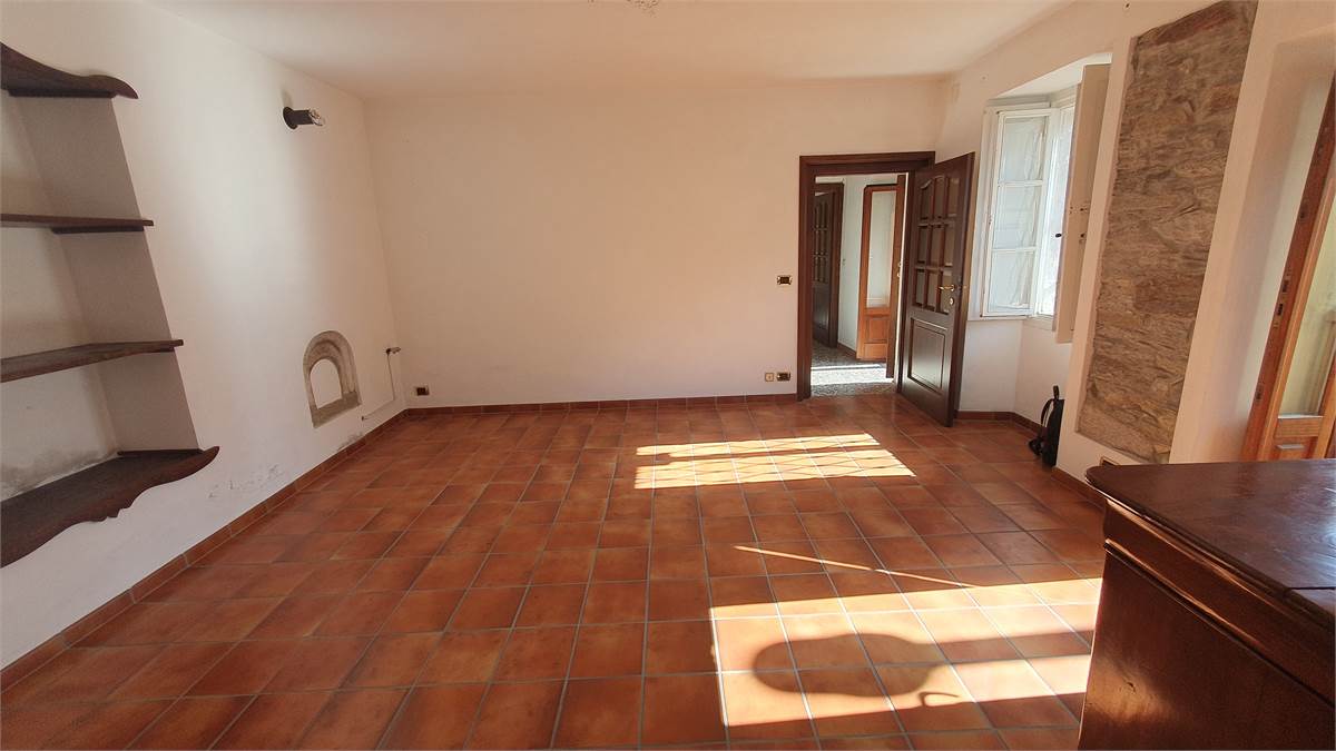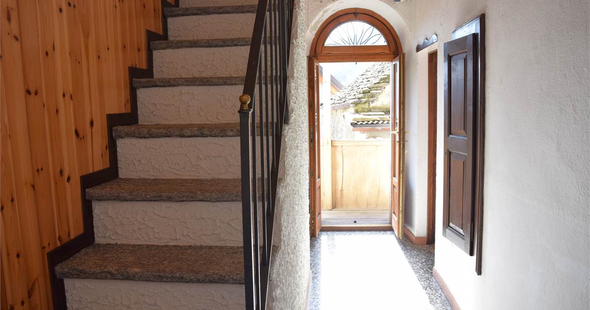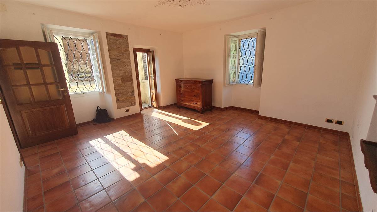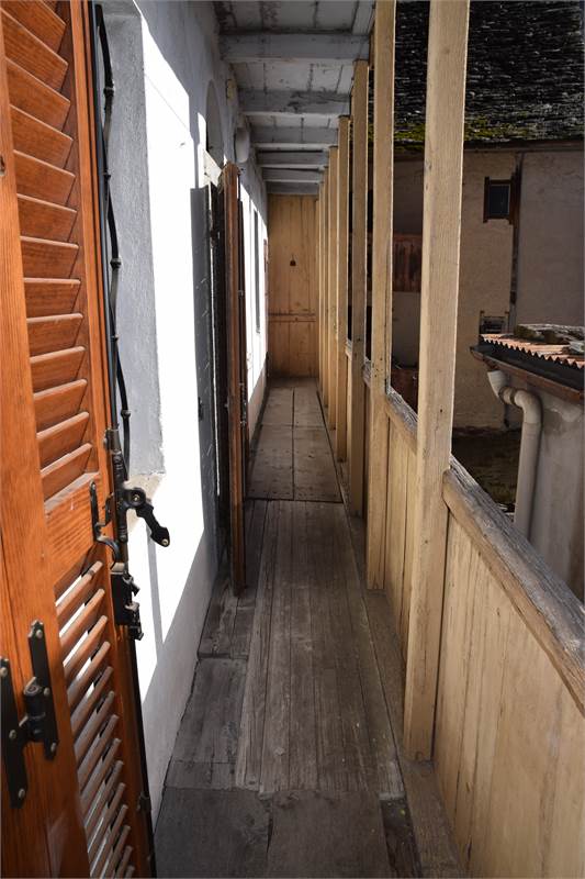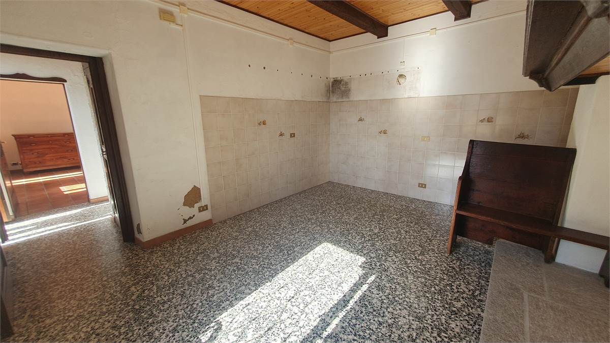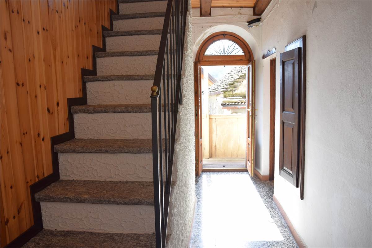 L'immobile è stato parzialmente ristrutturato ed è composto al piano terra da ingresso con armadio a muro, cucina abitabile con bel camino aperto, soggiorno con antico fornetto e balconata in legno con piccolo wc esterno. Tramite scala interna in sasso, si accede al primo piano in cui vi sono due camere da letto con bei pavimenti in legno, grazioso balconcino, balconata in legno con bella visuale sulla vallata e piccolo ripostiglio. Accessibile sempre dall'interno con scala, vi è il sottotetto non abitabile. Al piano seminterrato, invece, troviamo due spaziose cantine, di cui una a volta, con pavimentazione in sasso.