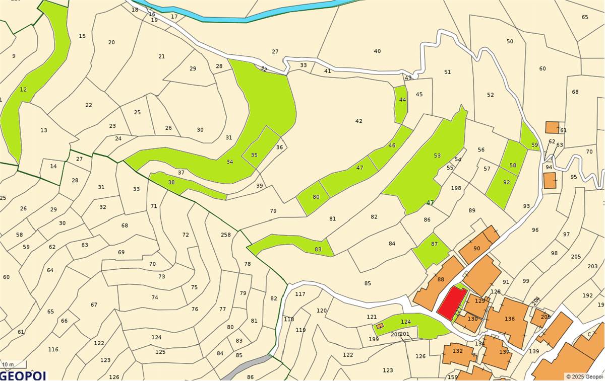 A completamento della proprietà vi sono il giardino a lato della casa di circa 150 mq con rigogliosa pianta di glicine e terreni sopra all'abitazione per un totale di circa 2.620 mq. Posteggi comunali nelle vicinanze.