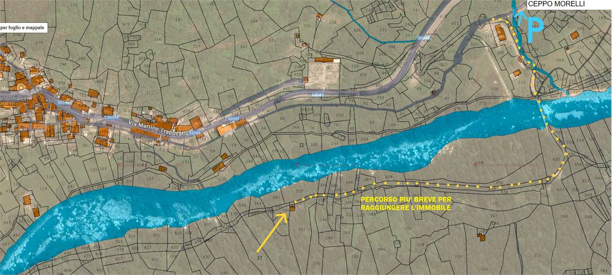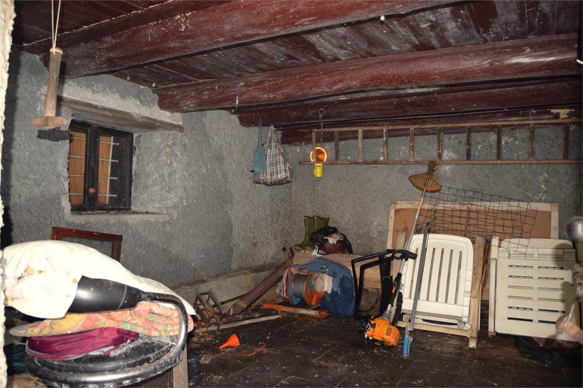 L'immobile è censito al catasto in categoria C/2 (deposito) e da PRGC non è ammesso il cambio di destinazione d'uso in abitazione. Si sviluppa su due livelli e i piani sono fra loro collegati dall'esterno. Al piano terra vi è un locale piastrellato ad uso ripostiglio (altezza 1,95 m) con porta d'ingresso in legno, finestra laterale e piccola corte esterna fronte strada. Al primo piano, con accesso sul retro, vi è un secondo locale sempre ad uso ripostiglio con camino a legna aperto nell'angolo al quale è stata collegata una stufa a legna economica e finestra con affaccio sulla strada e sul fiume Anza (altezza punto massimo 2,65 m). La metratura calpestabile totale dei due piani è di 34 mq. Il deposito è privo di utenze.