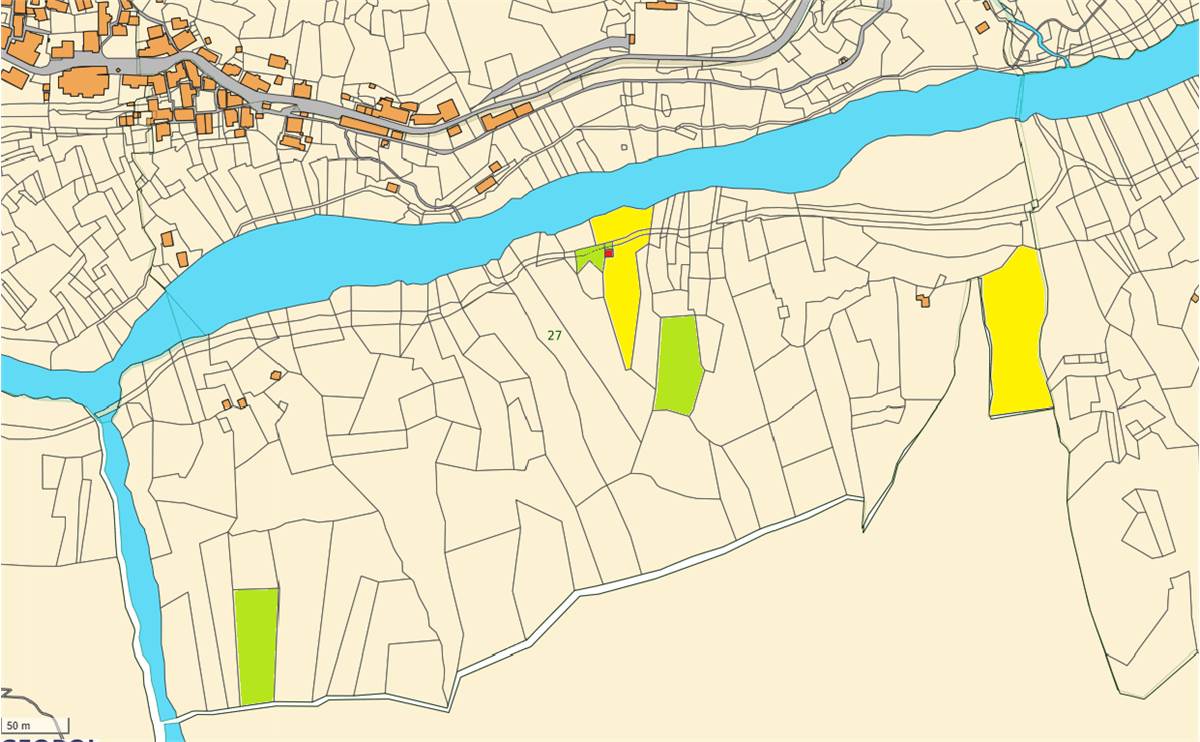 - bosco di 4.660 mq totale per la quota di 2/5 (colorazione gialla nell'estratto di mappa allegato)