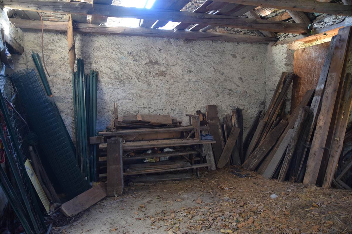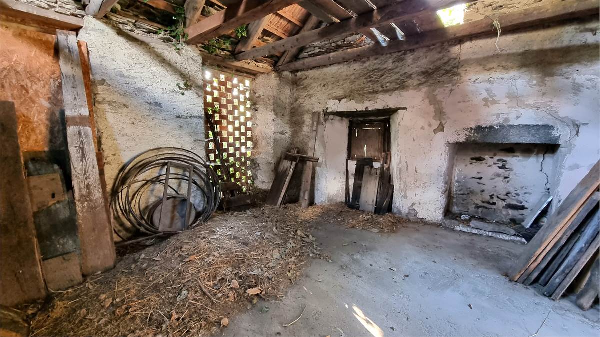 Il fabbricato è ad oggi sprovvisto di impianti ma vi sono comodi allacci alle utenze di acqua e di energia elettrica di fronte. Tetto in tegole rosse. Il rustico è attualmente censito al catasto in categoria C/2 (deposito) ma da PRGC rientra nei nuclei antichi nella categoria "Edifici, aggiunte, parti di edifici privi di valore storico/ambientale o in contrasto": per gli edifici non ad uso residenziale c'è la possibilità di "cambiamento di destinazione in residenza ed attività compatibili". Consentito mantenere le altezze interne esistenti o, se troppo modeste, di sopraelevare fino ad un metro. Vicoli sulle finiture.