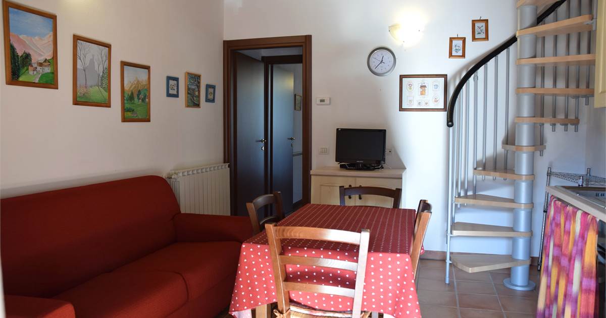 - ingresso su zona giorno con cucina a vista, camera con letto a castello, disimpegno, bagno con doccia, terrazzo coperto lato Monte Rosa e balcone coperto lato nord/est sito al piano primo.