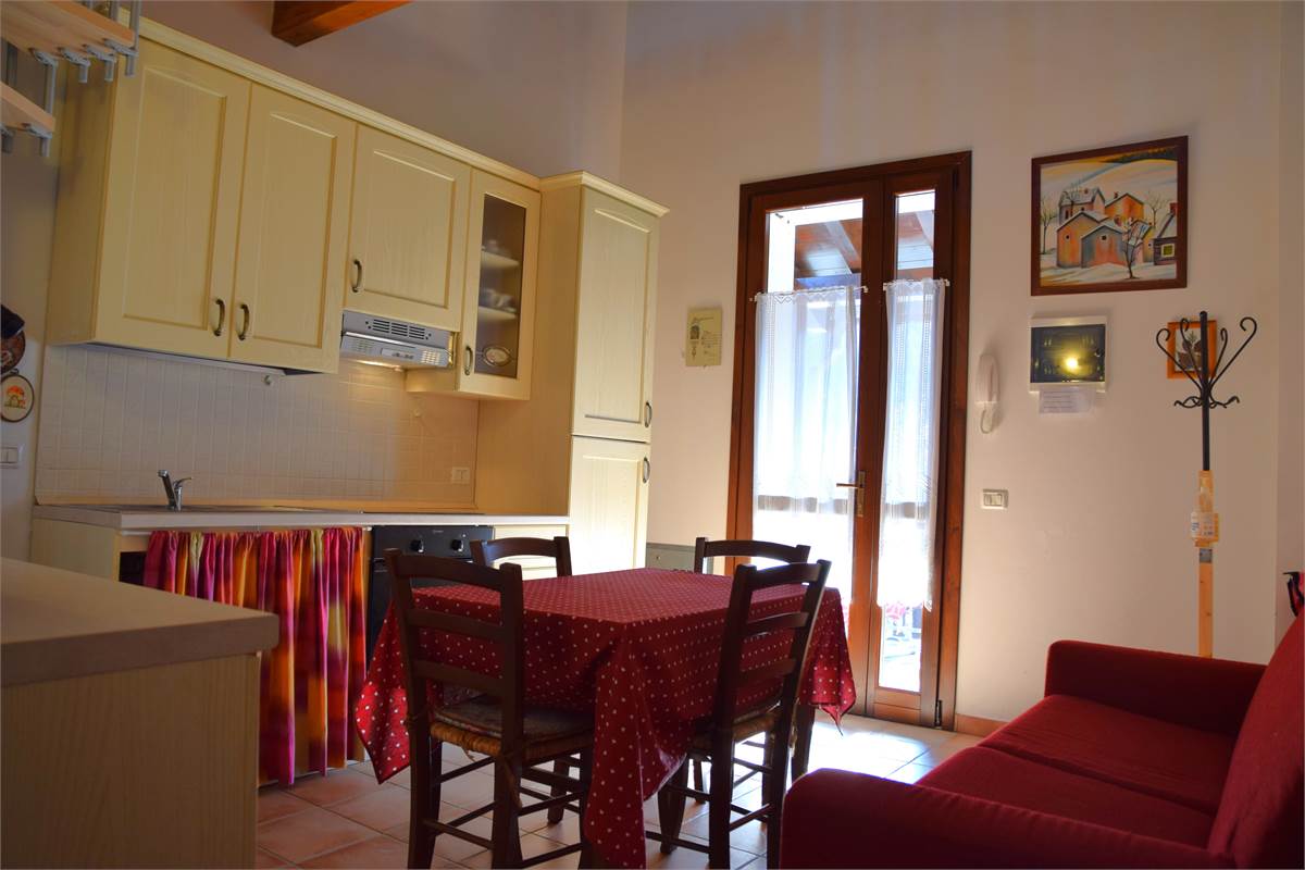 Il riscaldamento è a radiatori con termovalvole nuove ed è centralizzato (caldaia a condensazione). Presente canna fumaria nella zona giorno per eventuale installazione di stufa o camino (da richiedere maggiori info, trattandosi di condominio). Acqua calda autonoma con boiler elettrico nel bagno. Gli infissi esterni sono in legno doppio vetro con persiane in legno. Vetri termoacustici. Pavimento in cotto, in ceramica e in legno. Pareti coibentate. L'unità abitativa è libera, disponibile da subito e viene venduta arredata come da fotografie. Presenti divano letto, piano cottura ad induzione e lavatrice.