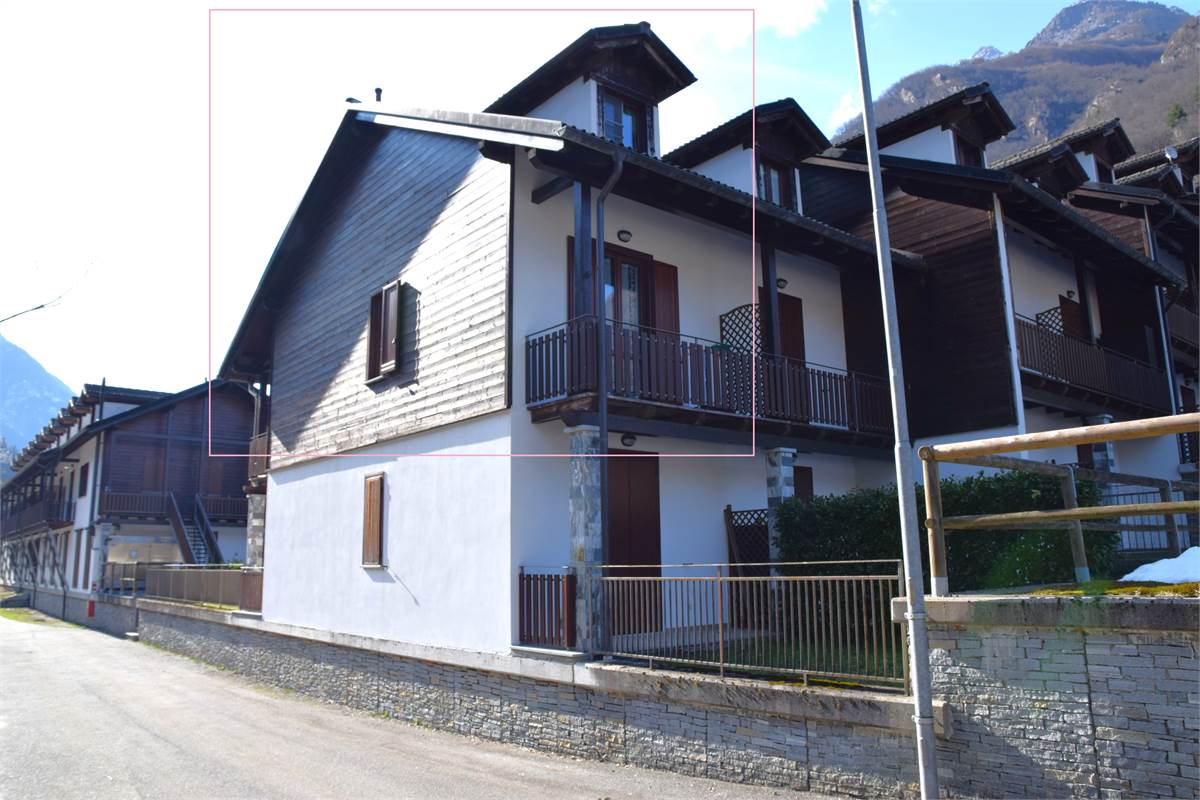 COMUNE DI VANZONE CON SAN CARLO - Nella tranquilla Località Valleggio (670 metri di altitudine), immerso nel verde e a soli 12 minuti dalle porte di Macugnaga, vendesi grazioso appartamento su due livelli sito nella palazzina "A" del complesso immobiliare denominato "Le Corti del Monte Rosa", un villaggio composto da moderne soluzioni tipo chalet costruito nel 2010.