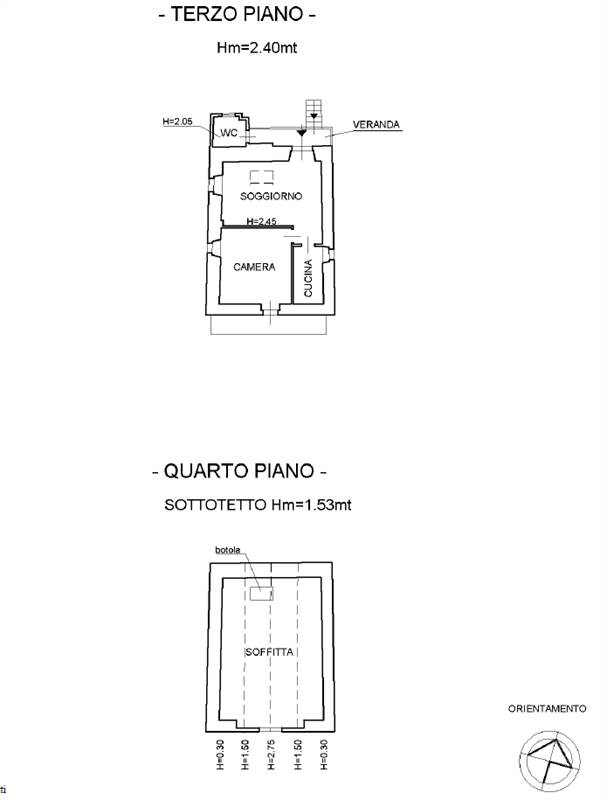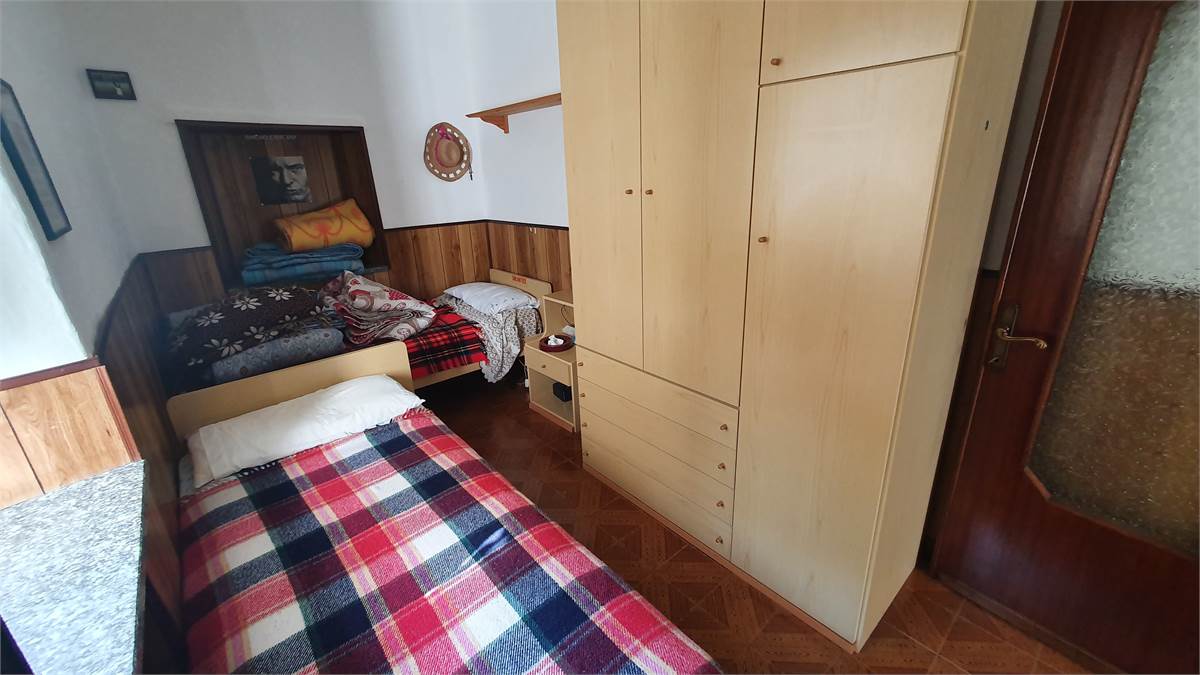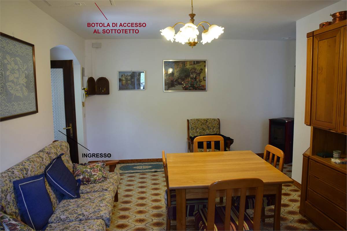 • L'appartamento al terzo piano misura circa 60 mq commerciali ed è composto da ingresso su soggiorno con stufa a pellet, cucinotto, camera da letto matrimoniale, balcone a sud, balcone verandato a nord e bagno con doccia. Accessibile da botola interna con scala retrattile vi è il sottotetto con copertura in piode.