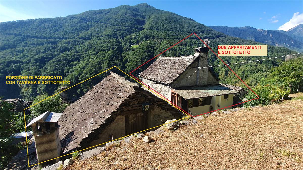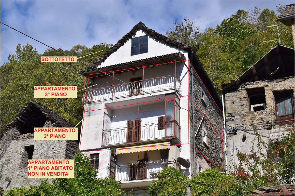 COMUNE DI VILLADOSSOLA - Nella tranquilla e soleggiata Frazione Boschetto, a pochissimi passi dal parcheggio comunale, vendesi due appartamenti siti al secondo e terzo piano di casa storica (anno costruzione 1519) con accessori e lotto di terreno. Il prezzo totale si riferisce a tutto ciò descritto qui di seguito.